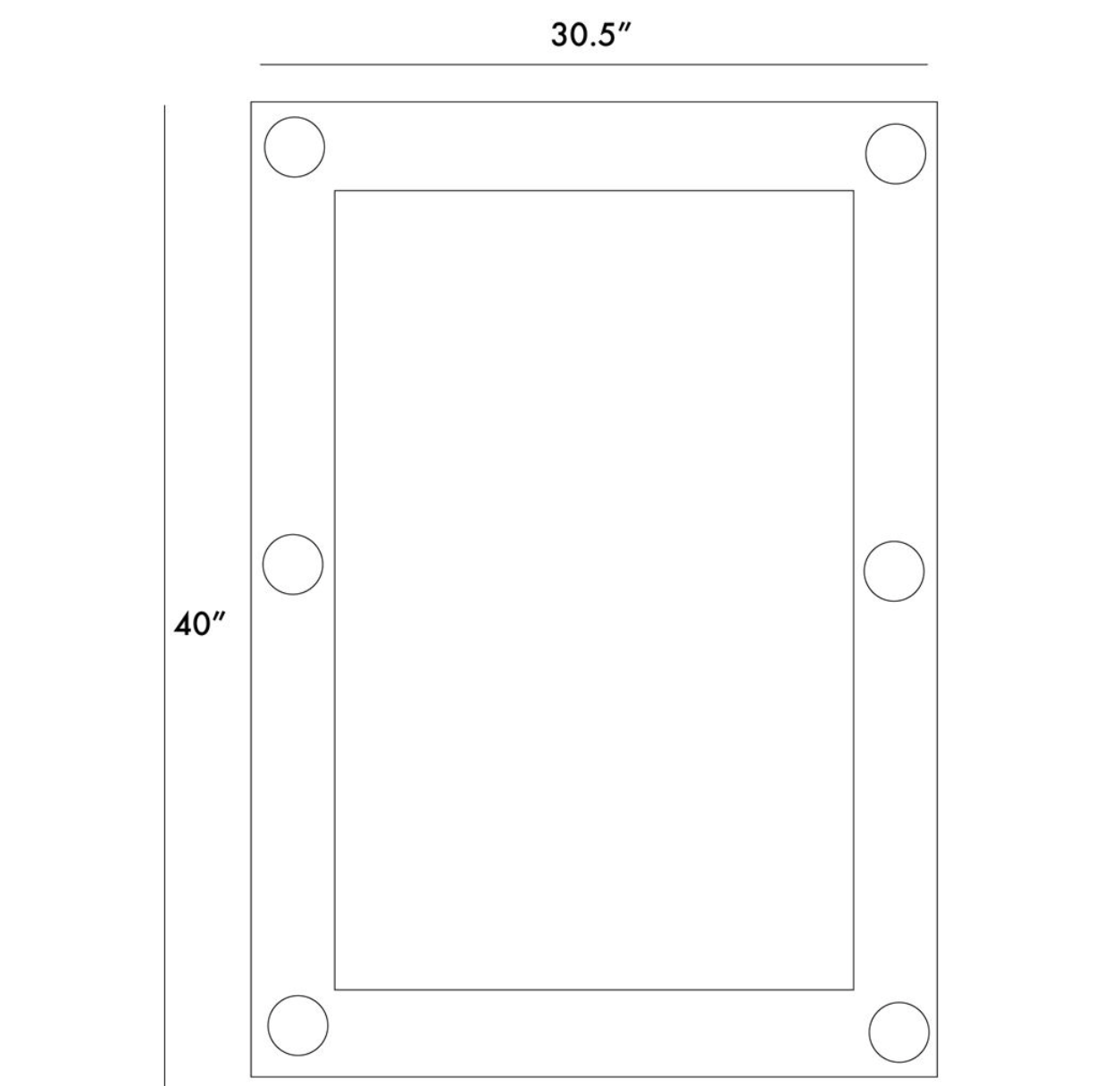 W: 30.5 in x D: 1.5 in x H: 40 in
