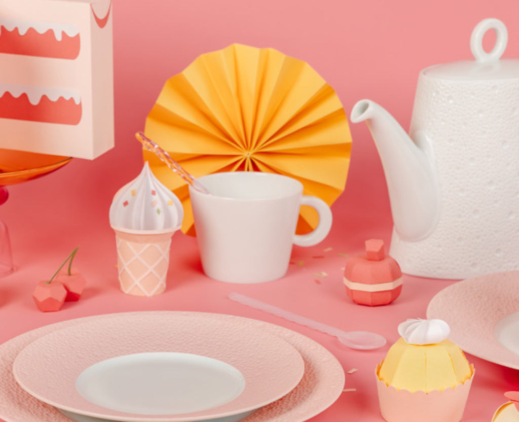 Candy pink, powder pink, baby pink, pastel pink... pink evokes a whole range of emotions linked to gourmandise, happiness and simple pleasures. It's also a color favored by pop culture everywhere - Kawaii pink or princess pink, to illustrate childhood, feminity and joy. Dressed in pink, the engraving in the Ecume collection is soft and tender. You can choose it for a totally pink table, mix it with Ecume Perle and Ecume White for a gradient effect, or enhance it with gold or platinum.