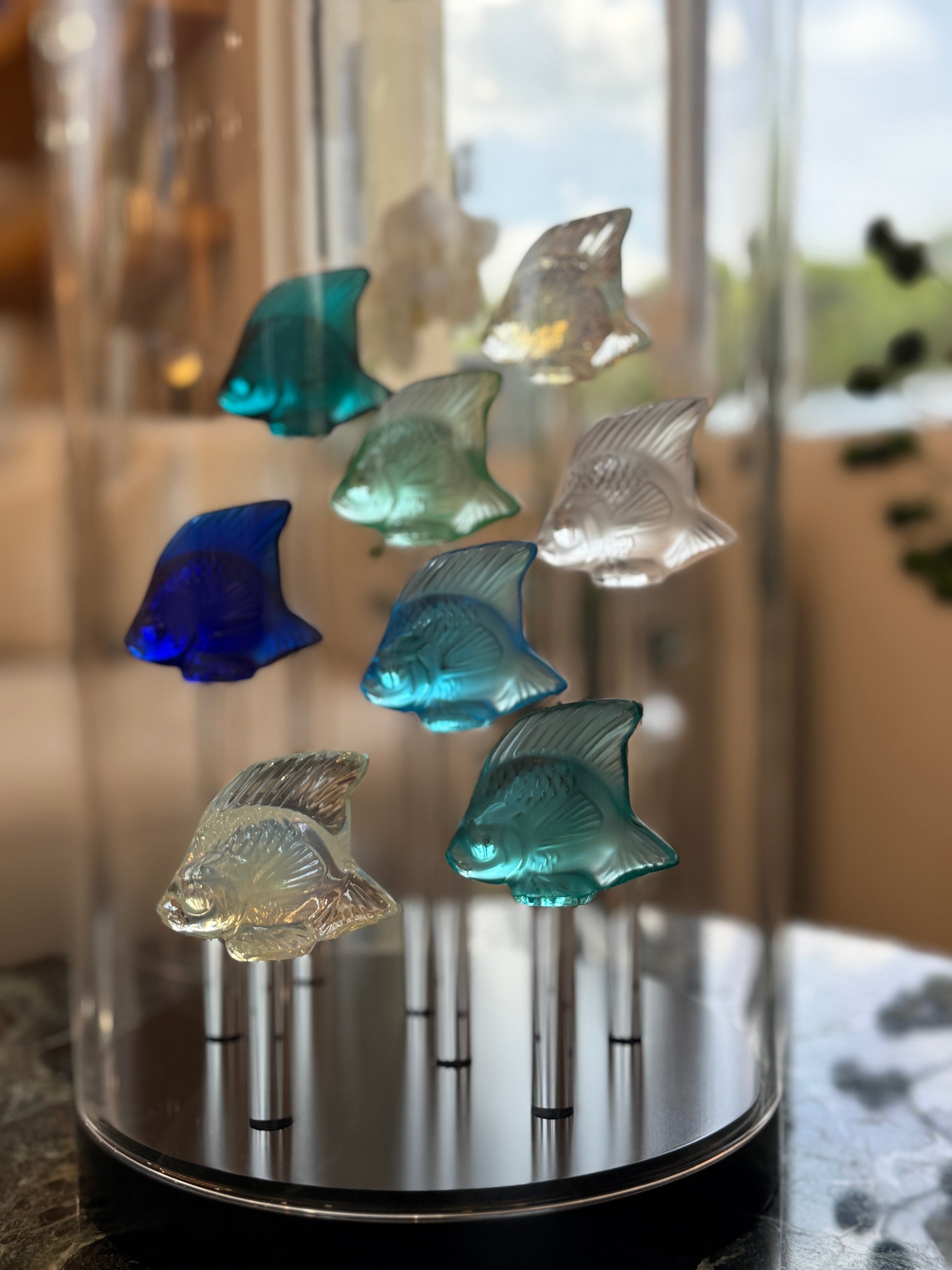 8 Fish Included: 1 Cap-Ferrat Blue, 1 Pale-Blue, 1 Opalescent, 1 Turquoise, 1 Mint Green, 1 Pale Turquoise, 2 Clear,
