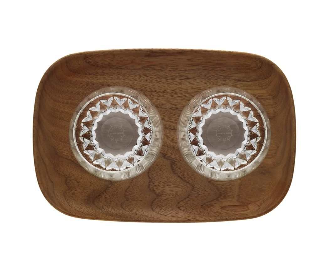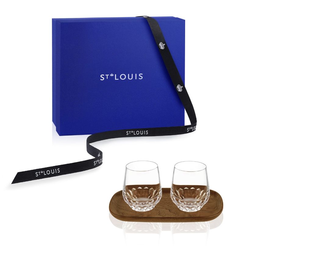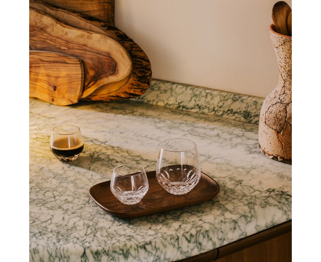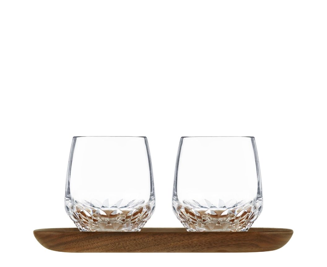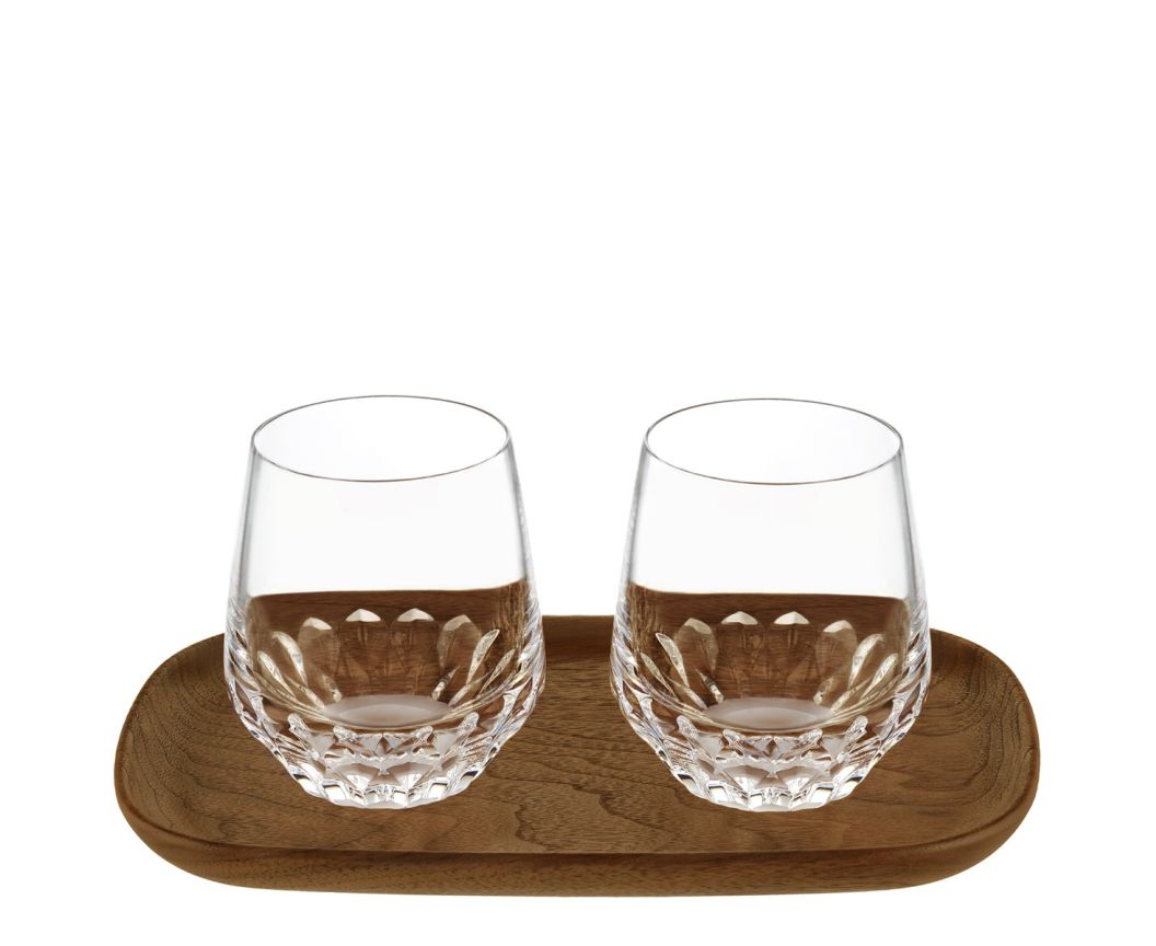 Discover the set of 2 small crystal tumblers and wooden tray, ideal for enjoying coffee. Treat yourself or someone else.