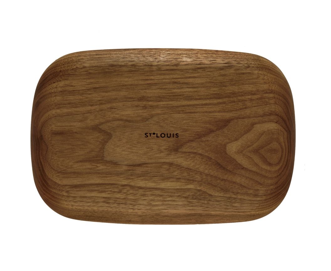 - Solid walnut wooden tray made in France with engraved Saint-Louis signature on the back.