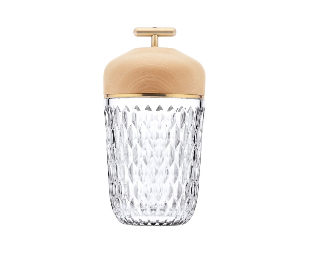 The portable lamp is one of the most emblematic objects in the Folia collection, and in Saint-Louis lighting in general. It is recognisable by its pure shapes, its size rich in deep bevels and its luminous signature.