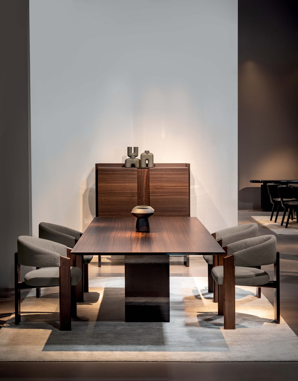 Gossip boasts an intense design: the components supporting the table’s base remind of absides on one side, while on the other, they are modernized through a refined balance of varying dimensions. The top extends with generous widths. The materials that characterize this product include wood or a mix of wood-ceramic. Gossip can be fully tailored thanks to Costantini Pietro’s extensive selection of finishes, which are available in both glossy and matte options.
