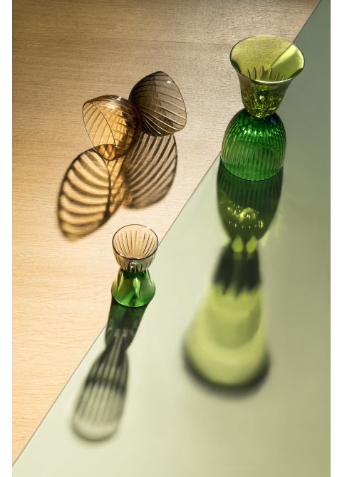 José Lévy creates a surprising marriage of sizes and colors by combining gobs of emblematic Saint-Louis glassware. These mischievous objects are as beautiful right side up as they are upside down. He plays with the shapes and chromatic palette of Saint-Louis, revisiting them, turning them upside down and assembling them to create unique objects. Glasses, decorative objects, candleholders... add color to any room in your home. Invent new uses for them!