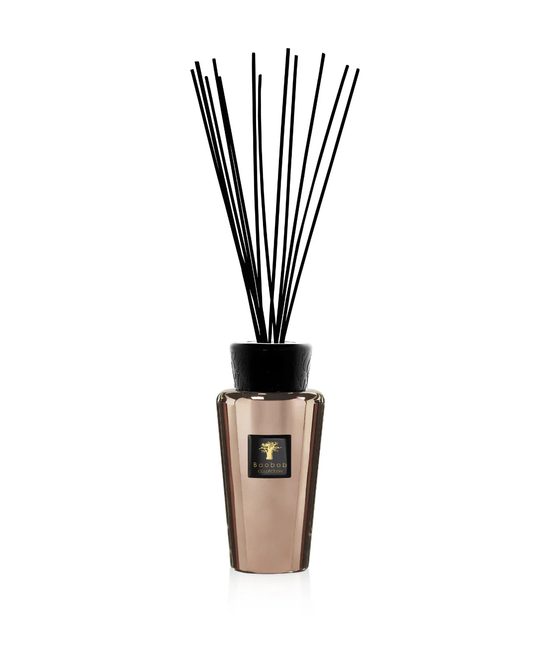 The 500 ml (17 fl oz) Cyprium fragrance diffuser comes in a copper metallic glass with a black and gold Bakelite cap. Its classic and elegant allure will allow it to take its place discretely in every room.*The perfume and sticks are included 19 cm | 500ml