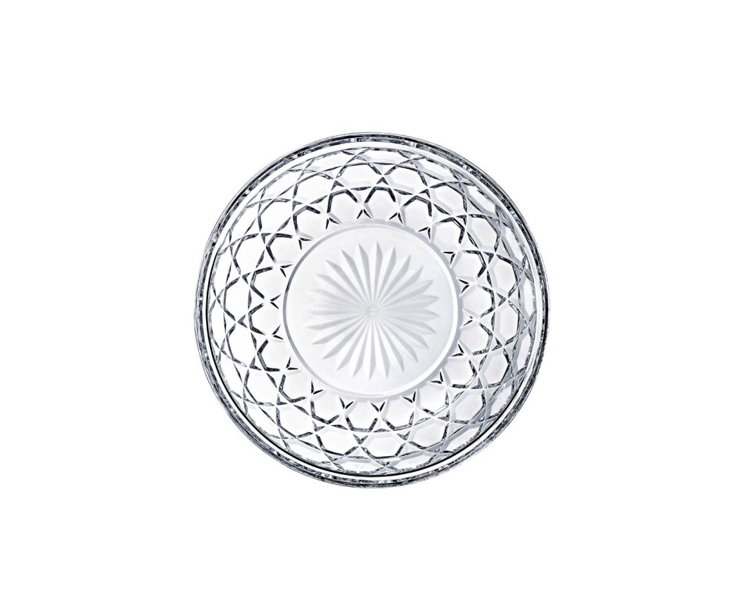 These cups, bowls, and centerpiece, inspired by the bobèches of the chandeliers in the Royal collection, feature a clear or colored crystal base and a pierrerie cut (also known as a large diamond).