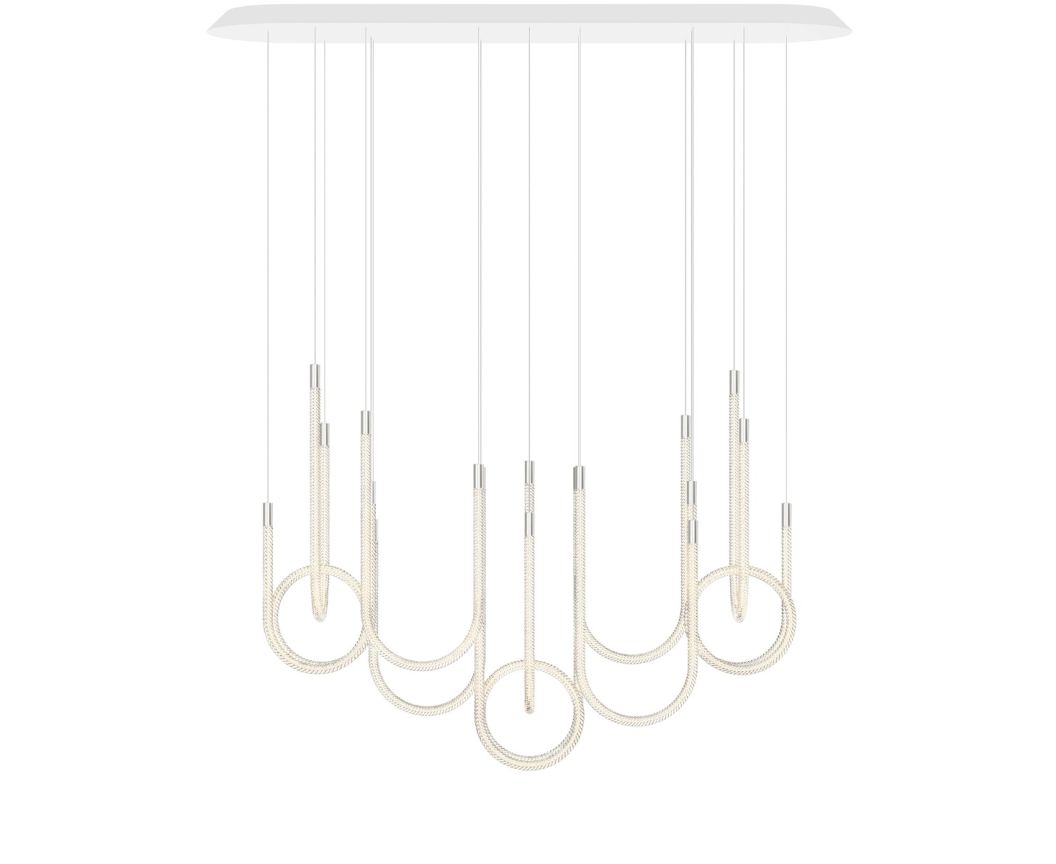 Discover this contemporary horizontal 10-light chandelier, perfect to showcase your design-inspired interior. It has been conceived to embellish a dining room, illuminate a reception room, or be placed above a large kitchen island. With an LED dimming system, it is possible to vary the intensity of your crystal chandelier.