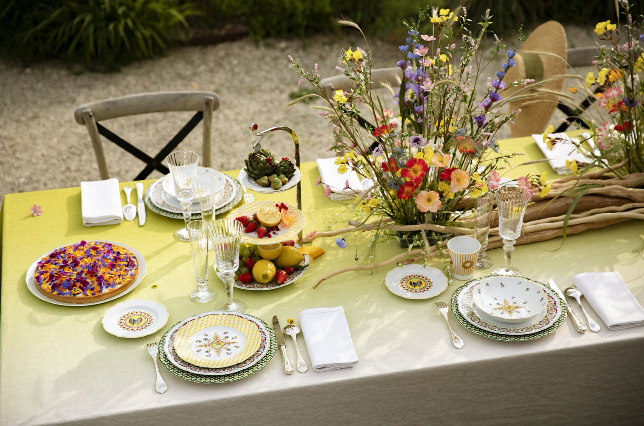 The Bernardaud Trianon collection is a vibrant, whimsical porcelain dinnerware set inspired by Lyon silks Napoleon commissioned for Versailles, featuring playful checkerboards with rosettes, butterflies, and flowers for a creative, free-spirited look that mixes classic French artistry with modern cheerfulness, offering a broad range of mixable pieces like plates, bowls, and tea sets for a radiant table setting. A fun a chic option for special occasions and elevated everyday dining.