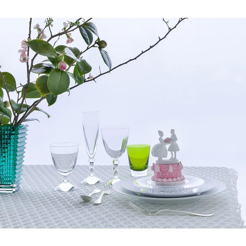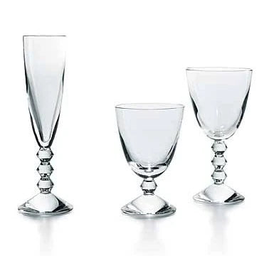 The Baccarat Crystal Vega collection has a sleek and modern silhouette. The geometric stem creates an eye-catching effect, with occasionally stacked diamond-shaped silhouette resembles exquisite beads strung together.
